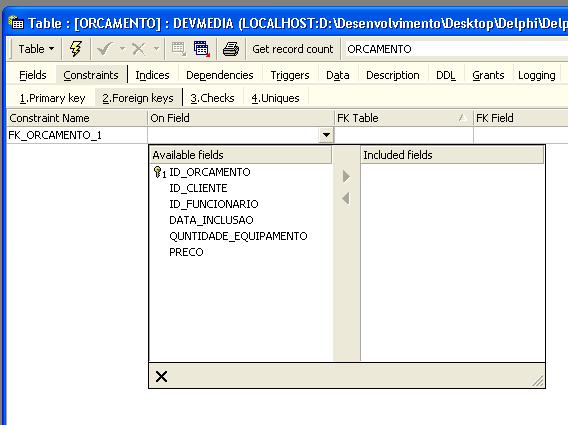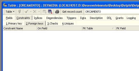 Neste momento devemos ir até a tabela de orçamento e selecionar a guia Constraints.