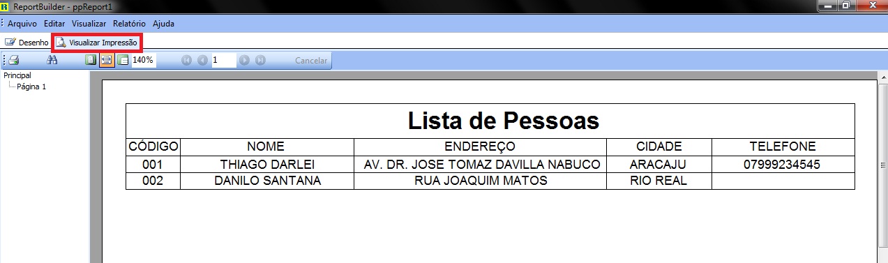 Após isso pressione F9 para rodar nossa aplicação e clique sobre o botão imprimir, veja o resultado!