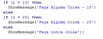 No Delphi nós temos o IF seguido da condição e posteriormente o THEN com a rotina a ser executada, conforme podemos ver na figura abaixo: