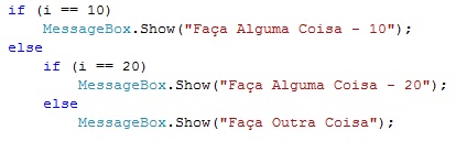 Já no C# nós não temos o THEN, e a condição precisa obrigatoriamente estar entre parênteses, ficando assim: