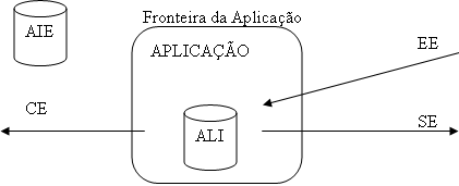 Agora que sabemos quais são as informações que serão mantidas pela aplicação temos que medir quais são os dados que passarão pela fronteira da aplicação, ou seja, os dados que o usuário mandará para o sistema e os dados que o sistema mandará para o usuário. Geralmente para cada ALI teremos uma transmissão pela fronteira da aplicação, como se pode ver abaixo. Neste artigo estaremos vendo somente