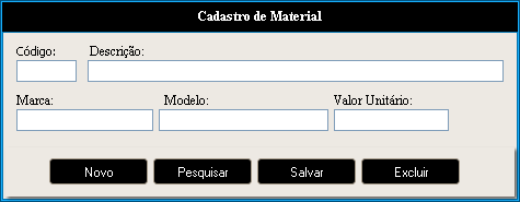 No exemplo que estamos trabalhando nestes artigos, vimos que será preciso criar uma tela de Cadastro de Material com os campos do ALI, como se pode vê na figura abaixo.