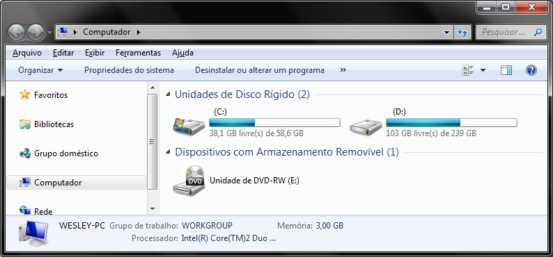 Podemos notar os itens que são as unidas de Disco e unidade de DVD-RW, e também estão classificadas em dois grupos como ilustrado na imagem anterior.