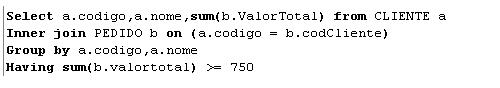 Vamos fazer um select para pegar todos os clientes com o total pedido maior ou igual que 750.