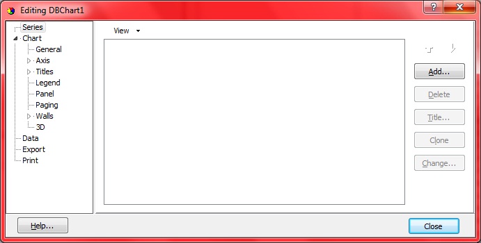 1 – Duplo clique no DBChart, você verá a seguinte janela, esta janela é o ponto de Start para construção do nosso gráfico. Em Title podemos escolher um título para o gráfico