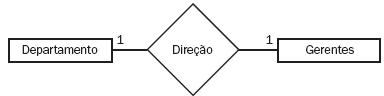 No exemplo mostrado na Figura 1 podemos entender melhor este tipo de relacionamento, onde estaremos definindo que um Gerente (e somente um) gerencia um (e somente um) Departamento. Ou seja, o mesmo Gerente não pode gerenciar mais de um Departamento e um Departamento não poderá ser gerenciado por mais de um Gerente.