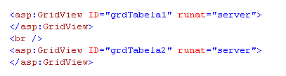 Para testar nossa aplicação vamos usar dois GridViews um chamado grdTabela1 e o outro chamado grdTabela2.