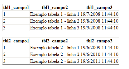 Vamos criar duas tabela em nosso banco de dados chamadas “tabela1” e “tabela2” e inserir alguns dados para teste. Conforme código abaixo: