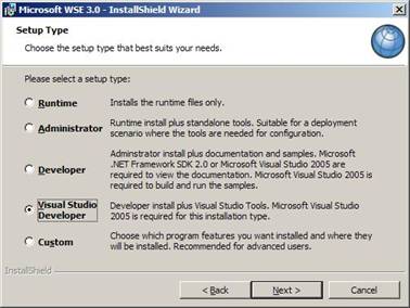 O processo de instalação do WSE 3.0 é muito simples, basta já ter instalado o .NET Framework 2.0 na máquina e ter registrado o ASP.NET 2.0 no seu servidor IIS. Se você já tem instalado o Visual Studio .NET 2005 essas duas tarefas já foram executadas pela instalação.