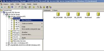Utilizaremos o Enterprise Manager para gerar as consultas (SELECTs) e criar tabelas e stored procedures no banco de dados.