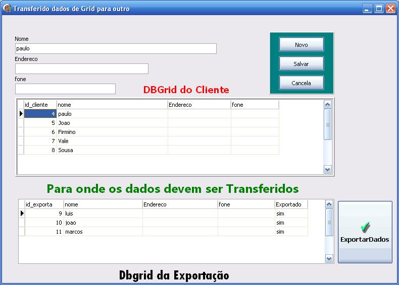 tblexportacao.FieldByName('nome').AsString:=tblcliente.fieldbyname('nome').AsString; //transferindo o nome do dbgrid para outro