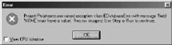 procedure ApplicationEvents1Exception(Sender: TObject; E: Exception);