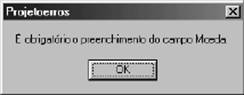 Desta forma, o Servidor reage com uma exceção indicando o não preenchimento do campo Moeda. Como temos um tratamento específico, não é exibido a caixa de diálogo(figura 2) e sim a mensagem da nossa última tela.