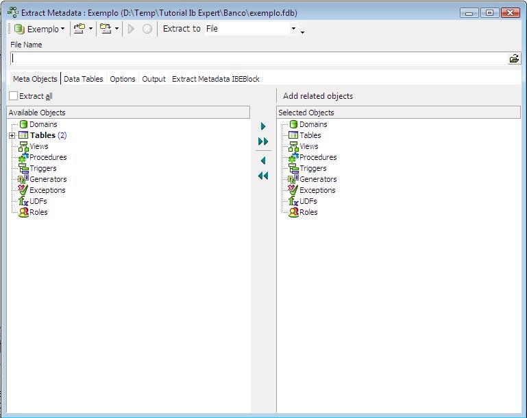 podemos selecionar apenas os Domains ou as tabelas ou as procedures.