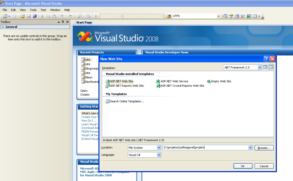 Crie um projeto no visual Studio do tipo Asp.net Web site: