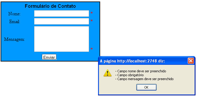 No campo Mensagem utilize um “RequiredFieldValidator” como fizemos para o campo Nome.