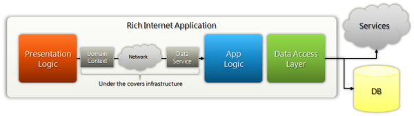 Um problema comum ao se desenvolver aplicações RIA e até mesmo um dos seus desáfios era justamente desenvolver em camadas. Observer a imagen abaixo: