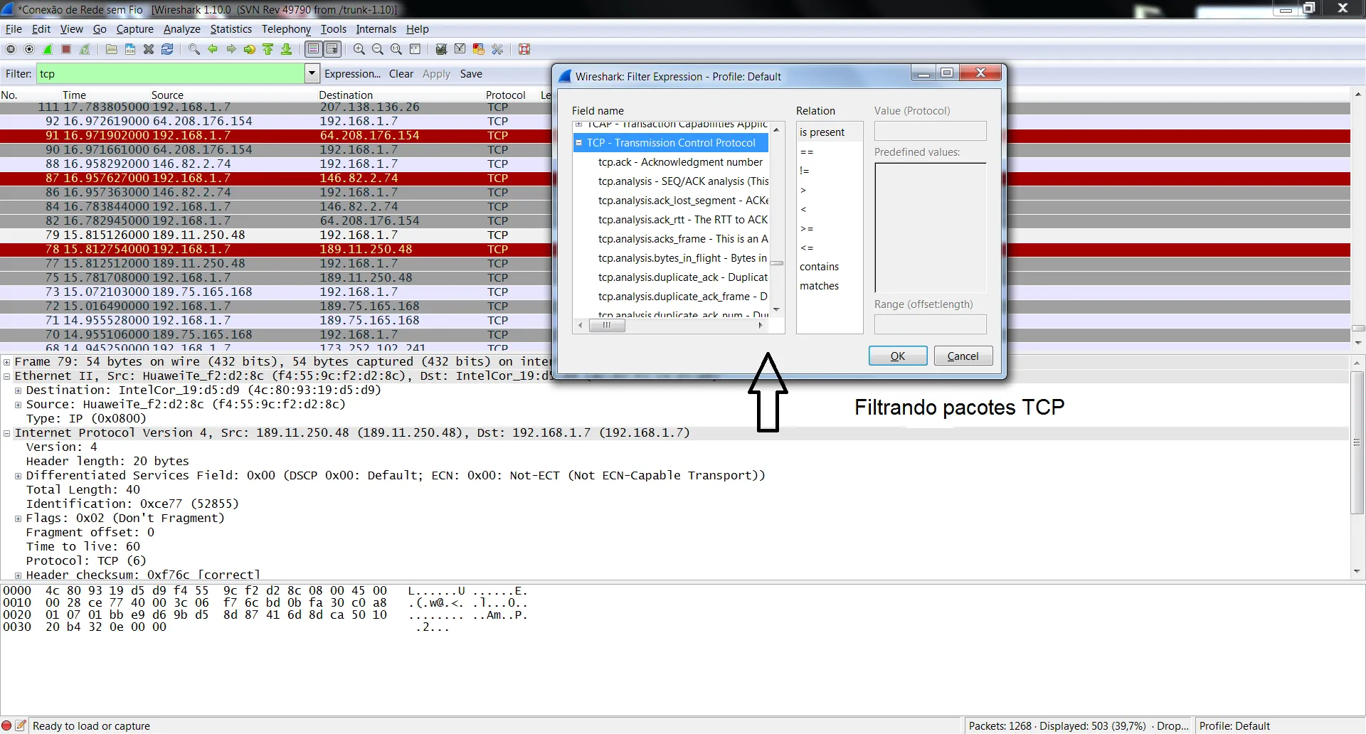 Figura 11. Filtragem de pacotes TCP no Wireshark.