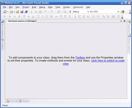 Usualmente será exibida a tela da Figura 2, mas normalmente trabalhamos com o código-fonte em C#. Para exibir este, clique no link click here to switch to code view para exibir o código como na Figura 3. Se você estiver utilizando o Visual Studio 2008, ele já exibirá a janela de código, por padrão.