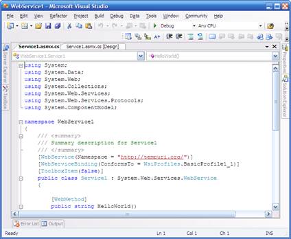 Nota: Para um método ser visível para aplicações externas ao Web Service, deve iniciar com a declaração [WebMethod] e ser public. Você pode ter funções internas que não sejam disponíveis para consumo. Basta omitir a declaração [WebMethod]. Além disso, o nome dos métodos não pode ter o mesmo nome da classe.